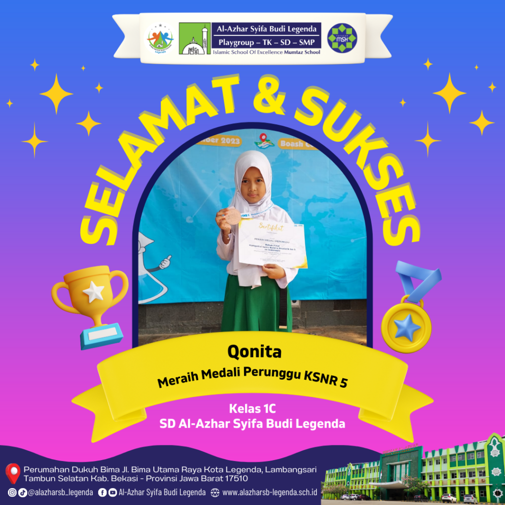 Selamat kepada Ananda Qonitanavi, Ananda Reitaka, M.Abdan, Gyasi, serta seluruh peserta yang telah berpartisipasi dalam KSNR 5. Semangat dan prestasi kalian adalah sumber inspirasi bagi seluruh siswa dan guru di SD Al-Azhar Syifa Budi Legenda Bekasi. Semoga keberhasilan ini akan menjadi dorongan untuk meraih prestasi yang lebih tinggi lagi di masa depan. 👏👏🎉🎉
